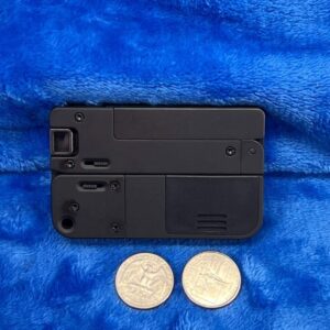 - Disguises itself as a metallic card-like object, making it the perfect pocket pistol for deep concealment.